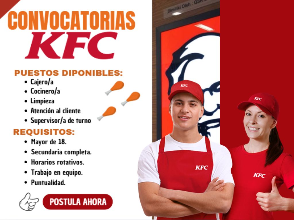 La convocatoria de empleos en KFC 2026 te brinda la oportunidad de unirte a una empresa global líder en comida rápida. Conoce vacantes, beneficios y el proceso para postularte y desarrollar tu carrera profesional 🍟🚀.